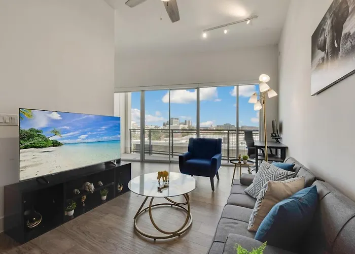 The accommodations at Sleek Loft are designed to impress. Featuring spacious two-bedroom layouts, each suite is thoughtfully equipped with a dedicated workspace, perfect for those needing to balance work and relaxation. The modern aesthetic is matched only by amenities, with access to a state-of-the-art gym, providing guests with a comprehensive fitness experience right at their doorstep.